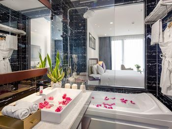 Спа-отель Aria Grand находится в 10 минутах езды от торгового центра Vincom и рядом с гольф-клубами. Мост влюбленных расположен в 2,7 км, а музей Чам — в 3,4 км. Ночные клубы в пешеходной зоне находятся примерно в 5 минутах ходьбы. Расстояние до международного аэропорта Дананга составляет 4 км.