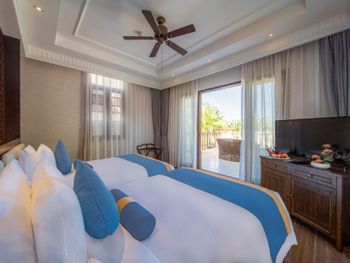 Villa Room with single/twin Bed (1-3й эт.) - 45 м², макс. 3 чел., вид на сад | двуспальная кровать (180х200 см)/ 2 односпальные кровати (130х200 см), гостиная, межкомнатная дверь, ванная комната с душевой