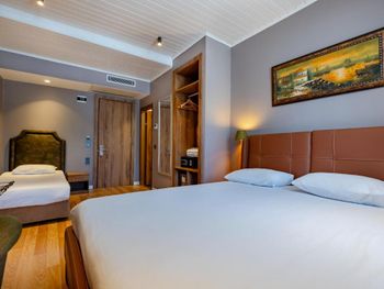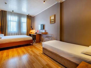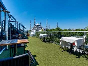 Очень понравился отель. Терраса на крыше,где подают завтрак, с видом на Голубую мечеть и Босфор, также есть выход на еще более высокий уровень террасы,чтобы сделать красивые фото. Нам предоставили повышение категории номера,что было приятно, а также место для хранения багажа при выселении,чтобы мы могли спокойно погулять до поездки в аэропорт. Отель расположен сразу у Голубой мечети и площади Султанахмет, а также мечети Айя София! Также у отеля расположено много магазинчиков, лавок и ресторанов. Недалеко от отеля есть трамвайная остановка, и через 2 остановки мы добрались до Гранд Базара.