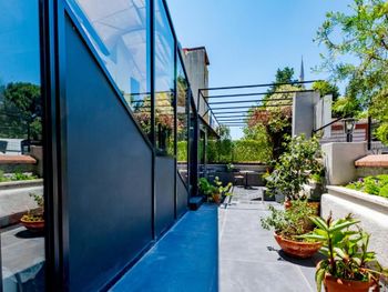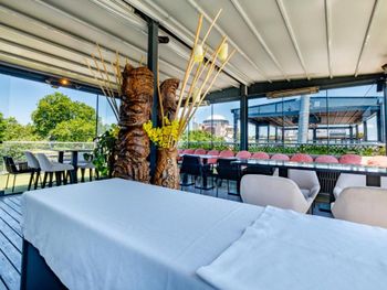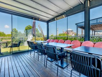 Хорошее расположение, с трудом нашли так как имеется с разных сторон два входа, красивое кафе на верхнем этаже, имеется крытый и уличный вариант, э открывается замечательный вид на Софию и Голубую Мечеть. Достойный завтрак. лифт.