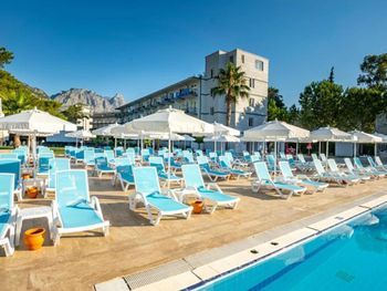 Неплохой отель, до моря не далеко, минут 10 очень медленным шагом, были начале октября, свободных лежаков на пляже и у бассейна было всегда достаточно. Чистое море, красивый вид, еда вполне приличная
