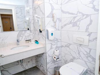 The interiors and furniture are quite outdated. The toilet was leaking and never got fixed. The biggest downside was the staff — most of them don’t speak English, and they looked extremely grumpy. In the restaurant, they just clean, cook, and clear tables like robots, with no interaction with guests. It seems like the staff is exhausted and unmotivated.