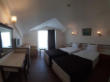 Во первых, адрес в букинге и адрес по факту отличается, отель находится в посёлке, 20 км от кемера и в этом посёлке, абсолютно нечего делать! В номере тараканы!!!( ночью и в туалете, свет не выключали) персонал только и думает как заработать на массаже, к слову хамам и сауна с бассейном, очень старый и вонючий, туда и бесплатно ходить страшно, не то что за деньги. Еда неплохая, но опять таки на обед остатки от ужина.