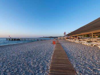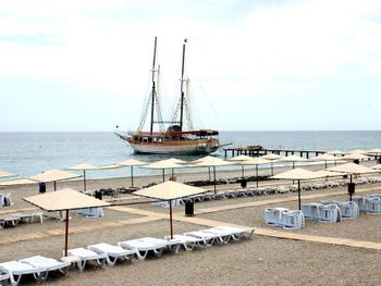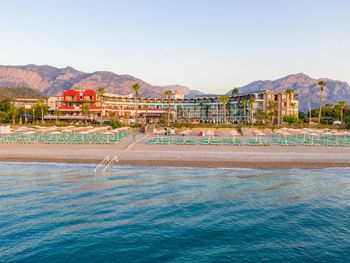 Пляж галечный. Часть гальки очень мелкая и поднимается волнами. Из-за этого вода становится несколько мутной. То есть это не те "голубые пляжи" Кемера. Пляж плохо убирают. Сколько я был в отеле, столько и лежал на своих местах мусор (куски какого-то дерева, в основном).