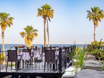Расположение в первой линии, свой пляж, отзывчивый персонал, весёлый аниматор, профессиональные массажисты в спа, все говорят по-русски.
