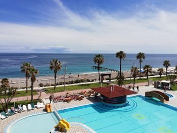 В принципе, отель не плохой. Цена и качество в соответствии. Но надо понимать, что это городской отель на первой линии. С одной стороны променад вдоль моря -это прекрасно, с другой - огороженной частной территории у отеля нет. Там даже второй бассейн с горками, баром и дискотекой, что называется, через дорогу. И даже на пляже были посторонние, видимо ввиду того, что пляж выглядел пустынным в сравнении с соседними. Отель обозначает пляж как песчано-галечный, но песок только под навесами, далее проход к морю по крупным камням, но зайти в море можно кое-где и без специальной обуви, тем более есть проход с поручнями, но в основном народ приобретает спецобувь.