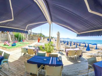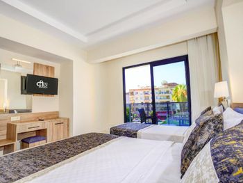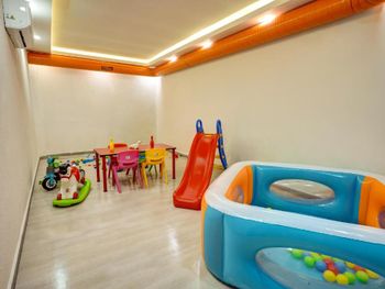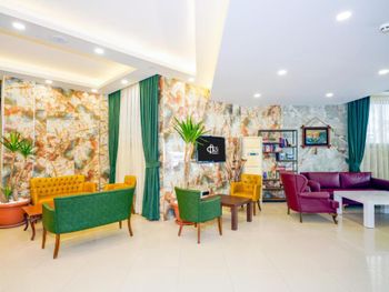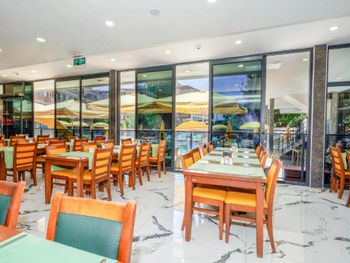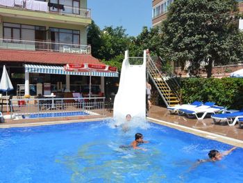 Номера ужасно старые. Разрисованные стены, на полу рваный линолиум, старый диван, постельное белье в катышках. Полотенцы были не свежие. В номере окно не так как на фото большие понарамные в пол, а маленькие деревянные. В ванной воняло канализацией. В коридоре возле нашего номера стояли большие мусорные баки которые все время были наполнены. У них оказывается два блока. В одном все номера старые (в котором мы жили) в другом более менее сделано косметический ремонт. Еда 1/10. Из мясо всегда только какая та курица невкусная, сосиски, колбаса с химическим запахом! Никакого выбора, все время очередь. Не всем хватает даже этой ужасной еды. Мы останавливались всего на 2 дня с ребенком. Кстати для детей никакой еды! Все 2 дня после каждой приема пищ у нас болело живот. Игральная комната для детей расположен в подвале. Ни окна, ни вытяжки. Сильно пахнет сыростью и плесенью! В бассейне только до 18ч можно купаться. И то там никогда не бывает пустых лежаков (их максимум 20шт). В ресепшне 2 мужчин по очереди работают. По моложе он вежливый, старается. Но пожилой мужчина грубый, не хочет отвечать на вопросы , что то в носу фыркает.