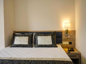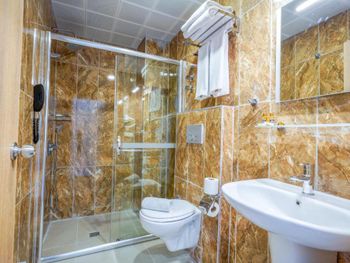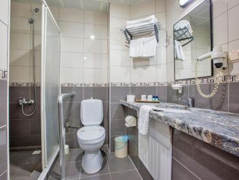 К сожалению, отель не соответствует заявленным 4 звездам на своей вывеске ни чистотой, ни многим другим. В ванне отсутствуют привычные уходовые средства (шампунь, кондиционер, шапочка, палочки для ушей). Но справедливости ради стоит отметить, что есть общий диспансер с гелем для душа. Также нет ни халата, ни тапочек. Что касается постельного белья, оно было мятым. На кондиционере отсутствовала двигающаяся закрылка, что не позволяло регулировать направление воздуха, к тому же на второй день использования кондиционера в номере образовалась приличная лужа. Дверь в ванную комнату не закрывалась до конца из-за перекошенности. А чистота в номере в день заселения оставляла желать лучшего. На второй день, правда, было чище. Также никому не советую жить в угловых номерах - в этом случае обзор с балкона сильно ограничен и более того, в номере царит темнота.