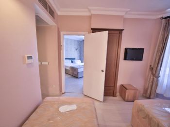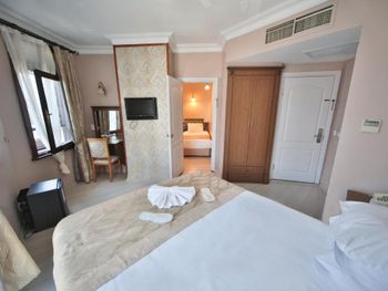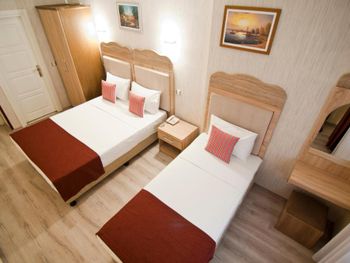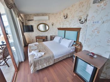 бронировали номер делюкс. все очень старое, пыльное, половина освещения не работает. вид на Босфор через чужое сушащаяся бельё. трансфер в маршрутке. так же по приезду заселили в номер, а там ещё лежали чужие вещи. в итоге прождали минут 10 и заселились, но было полное впечатление, что просто поменяли полотенца. все очень старое