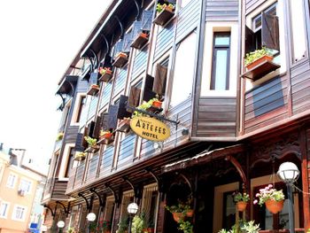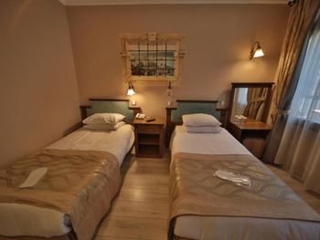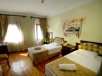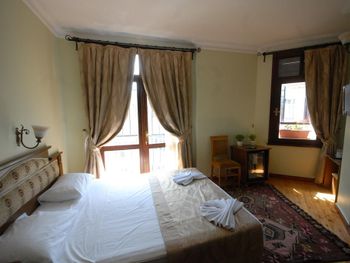 Близкое расположение к достопримечательностям. Отель находится в уютной улочке, где нет шума машин и потока туристов. Рядом кафе и магазины. Нам выделили номер с кроватью-топчаном как у Султана Сулеймана😄