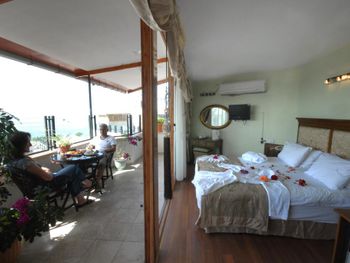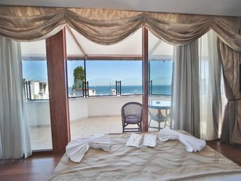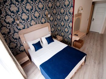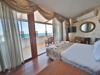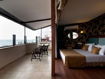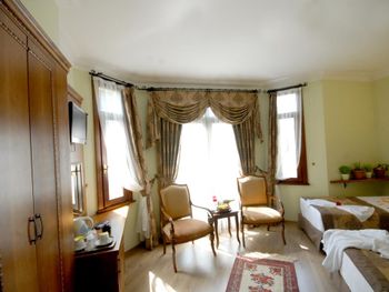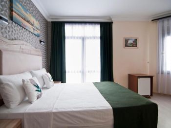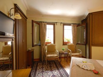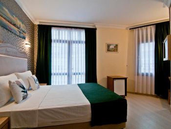 Расположение отеля удачное - тихо (не считая криков чаек и муэдзинов) и в пешей доступности основные достопримечательности. Люкс с видом на море - окна в пол и из окна вид на мраморное море - очень понравилось. Номер большой, для заседаний с компанией - отлично подходит, расположен рядом с рестораном и выходом на крышу, что тоже очень удобно (обычные номера малюсенькие). Персонал говорит на турецком и английском, но в совершенстве владеют гугл переводчиком. )) Завтраки однотипные разнообразием не отличаются, но в номере есть холодильник.