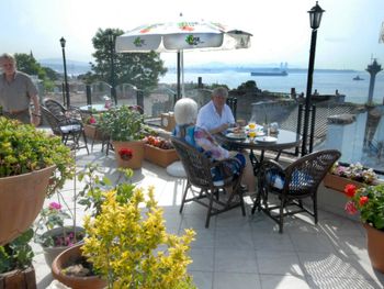 Отель находится на тихой улице в районе Султанахмет. Вечером нет шума машин, транспорта. Утром на террасе можно любоваться морем. Планирую селиться только в этом отеле