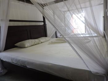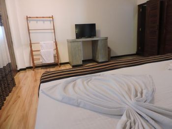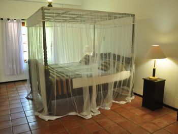 Всё. Номер грязный, хлопья пыли под кроватью, кран болтается и невозможно его открыть, не держа второй рукой,так как не было генератора в отеле, соотвественно во время отключения электричества, не работал кондиционер ( получается, что смысла его указывать не было), в номере не было даже крошечного холодильника, постельное белье мятое и в пятнах, никаких мыльных принадлежностей и в помине нет( хотя мы уже и не помним- обещали ли их), на две кровати стоят один стул и ни одного намёка даже на тумбочку у кровати, везде паутина и грязь (раковина, зеркало, кран). Реально не понимаю кто пишет хорошие отзывы. Либо за такие отзывы что-то дают, либо люди считают что этот хлев-это нормально.