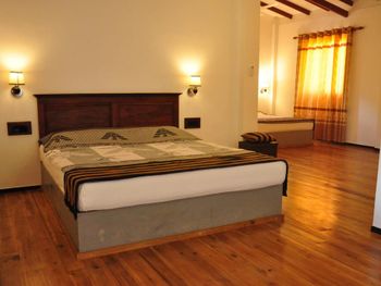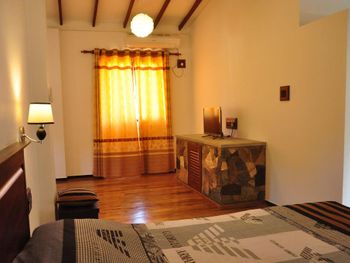 Номер - плохой! Темнота даже среди белого дня! Соседний номер, который нам предложили как вариант - немногим лучше, но вообще без окна. Вернее, окно есть, но выходит во внутренний коридор здания и света в комнате не прибавляет. Вообще освещение безобразное! Читать вечером просто невозможно. Только пользоваться гаджетами. Кстати, тоже проблематично - связь отвратительная. Кухня есть, да. И даже столовая есть. Но, опять же из-за отсутствия освещения, пользоваться ими невозможно. Полы каменные. Не из светлой гладкой плитки, а темные, грязные квадраты. Сантехника ужасная. Такое впечатление, что ее просто поставили на пол, ничем не закрепляя. Из душа еле течет, а кран в раковине лишь брызгает в сторону тонкой струйкой. Хорошо работает только "дудочка" возле унитаза. Прямо, хоть там фрукты мой! Опять же - темнота. Конечно, в номере старались находиться как можно меньше времени. Но вечером, больше негде! Заявленный садик - заросшая травой и заваленная мусором, соседняя территория за забором. Небольшой внутренний дворик постоянно занят минивэном, или автомобилем или, как минимум тук-туком, а то и двумя. Вот так вот...