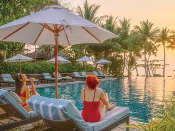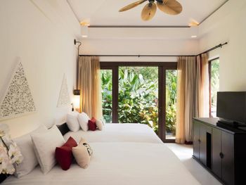 Были здесь 5 ночей. Отель шикарный, ты чувствуешь, что ты не в каком-то европейском отеле, а именно в Тайланде, это очень здорово! Есть 2 ресторана на территории, идти к ним через тропический лес по приятным дорожкам. Завтрак отличный. Гостей немного, отель расположен не в самом центре, а в уединении, поэтому просто идеально подойдет, если вам нужна не толпа, а лишь красота Тайланда. Персонал милый и заботливый. Есть бесплатный трансфер от отеля до ночного рынка. We were here for 5 nights. The hotel is gorgeous, you feel like you are not in some european hotel, but in Thailand, it\'s great! There are 2 restaurants on the territory, you have to go through the tropical forest along nice paths to get to them. The breakfast is excellent. There are few guests, the hotel is not located in the very center, but in seclusion, so it is just perfect if you do not need a crowd, but only the beauty of Thailand. The staff is nice and caring. There is a free transfer from the hotel to the night market