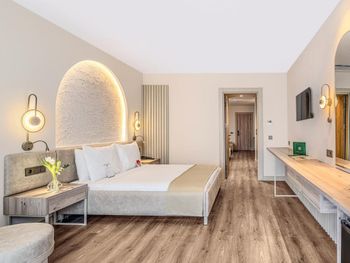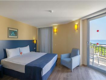 Отель скорее заслуживает 4 звезды. Месторасположение отеля в деревне, за пределами отеля можно пройтись до местного рынка, где все очень дорого. Старые кондиционеры в номерах, которые ужасно гудят, и расположены прямо над кроватью, тем кто чутко спит, будет сложно заснуть. Внешний блок кондиционера стоит на балконе, дует горячим воздухом, поэтому на балконе посидеть не удасться. Питание однообразное, фруктов и сладостей мало. Даже круассанов, которые везде подают на завтрак не было. Пляж мелкая галька, запаситесь специальной обувью. Анимация очень слабая, в течении дня ребят не видно и не слышно. Изо дня в день одно и тоже йога, водное поло, дартс, зумба. И все это скучно и заезжено.