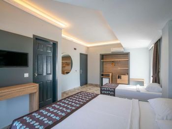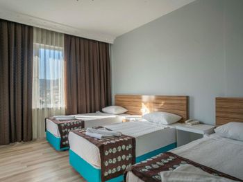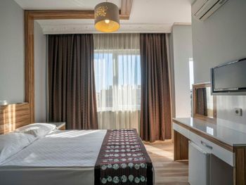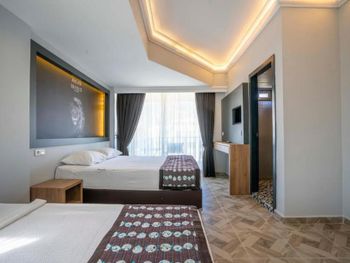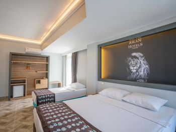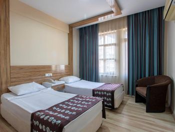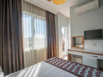 Отличный отель. Прекрасное соотношение цены и качества. Очень хорошее месторасположение , находится рядом с аквапарком на центральной улице Ататюрк. Для семьи из четырёх человек камфорное размещение . Нам дали двухкомнатный номер, в одной комнате две кровати и в другой комнате одна двухспальная кровать. Прекрасный отзывчивый персонал, когда мы попросили комнату с видом во двор, чтобы не слышать шум от машин, нам любезно показали несколько номеров и мы выбрали тот который нам подходит. Очень хорошее впечатление об этом отеле. На ресепшене работает очень хороший администратор Ayhan обратившись к нему по любому вопросу он сразу же все решит, любезно предложит чай. Для бюджетного и комфортного проживания это идеальный вариант.