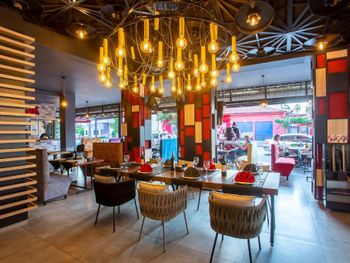 Близко к пляжу без плит, реально минут 5-7 идти, есть балкон со столиком и стульями, есть шкафы, можно разобрать вещи и разместить чемодан. До рыбного рынка недалеко, до улицы баров то же, везде можно добраться пешком. Персонал приветливый. Бармен знает русский. Стоимость проживания не высокая, относительно отелей рядом. Так что в целом за свои деньги пойдёт.