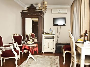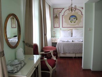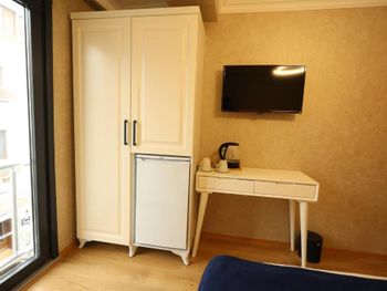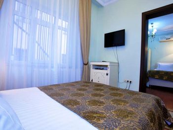 Всем привет! Только вернувшись из отпуска пишу отзыв, пока свежи воспоминания. У отеля превосходное расположение, находится в самом центре Старого города в районе Султанахмет. Голубая мечеть видна из окна, до площади Султанахмет - 3 минуты пешком, до Айя Софии - 5 минут, до остановки скоростного трамвая - 7 минут неспешным шагом. Отель бюджетный, но персонал старается. Мебель уставшая это мягко сказано, половину из нее уже пора утилизировать. Мы жили на 5 этаже, подниматься по крутой винтовой лестнице, особенно с вещами, тот еще квест. Номер у нас был категории люкс, смысла его брать нет никакого, берите стандарт и не переплачивайте, оно того явно не стоит. Большая ванная комната, просто огромная. В ней было все необходимое: гель для душа, шампунь, кондиционер, ватные палочки и диски, шапочка для душа. Полотенец тоже хватало, меняли их каждый день на чистые, в номере убирали по требованию. Горячая вода в любое время с хорошим напором. Телевидения Российского нет вообще, только турецкие каналы. Есть вай фай ,работал стабильно хорошо. Завтраки заурядные, перекусить конечно можно, но особого выбора нет. Яйца, хлеб, сыр, пара салатов, выпечка, чай, кофе. Зато красивый вид на море открывается с террасы. Хотелось бы добавить, что отель расположен между тремя мечетями и призыв к молитве с утра до ночи ооооочень громко звучит со всех сторон. Подытожим, категорию стандарт за недорого - рекомендую, если ценник приличный, не стоит, поищите что-нибудь другое, в этом районе полно отелей гораздо лучше.