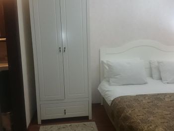 Шкаф для одежды 4 человек крайне недостаточен. Вся мебель давно уже должна быть на свалке. От неё и запах в номере - как будто в нём живёт пожилой человек. Запах не выветривается. Проветривание не помогает. Только одна створка открывается вверх. Остальные три только на распашку. Все двери - канадка. Если кто не в курсе, то звукоизоляция у них нулевая. Слышно каждый шаг на лестнице. Выспаться большая проблема. Вечером и ночью слышно улицу (покрытие - брусчатка) и соседей, с 6.00 начинает завывать мулла, с 7.00 начинают готовить помещение этажом выше к завтраку, с 8.00 жильцы топают на завтрак. И все это прекрасно слышно.