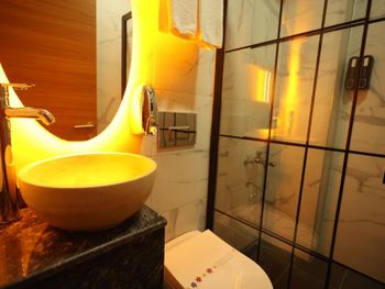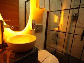 При заселении не было достаточного количества полотенец, туалетная бумага отсутствовала, гладильных принадлежностей в номере нет. Мусорка в туалете сломана и от педали не открывается. В дозаторы в душе залито нечто похожее на мыльную воду но никак не шампунь или гель для душа.