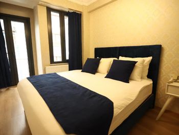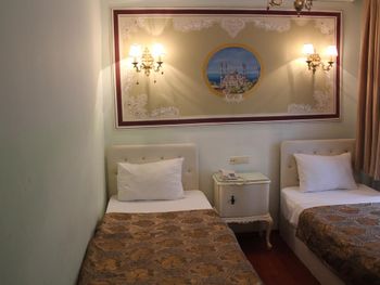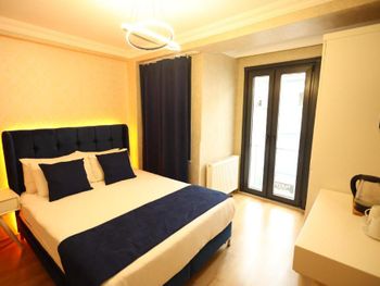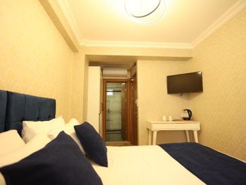 Отель находится рядом с Султанахмет, на крыше есть терраса с видом и на голубую мечеть и на море, очень вкусные завтраки в формате шведского стола (много салатов, свежие томаты, огурцы, яблоки, апельсины, яичница с овощами и сосисками, наггетсы, выпечка), очень доброжелательный персонал. В номере холодильник, чайник, подушки разной жесткости, на выбор. При бронировании произошло недоразумение - на букинге была возможность указать что нужны 2 односпальные кровати, а в номере не было такой возможности, нам предложили другой номер, а мы были очень уставшие, не хотелось затеивать переезд, так нам принесли второе одеяло, а кровать очень широкая, так что нам было комфортно. При заезде в номере была 2-х литровая бутылка воды, пакетики чая, кофе растворимый, потом не добавляли, вода тоже только 1 раз. Уборка по запросу - чтобы прибрали в номере надо на ручку снаружи вывесить табличку. Отель очень понравился.