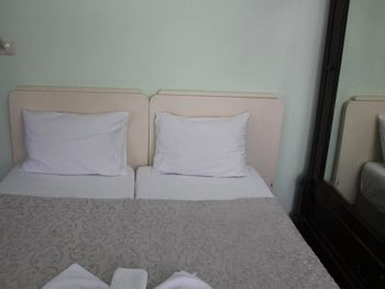 Одноместные кровати представляют собой несколько матрасов и наматрасников положенных друг на друга (все они откровенно грязные). Изголовье кровати просто стоит рядом. Отверстие сбоку одного из матрасов просто заклеено пластырем.