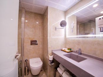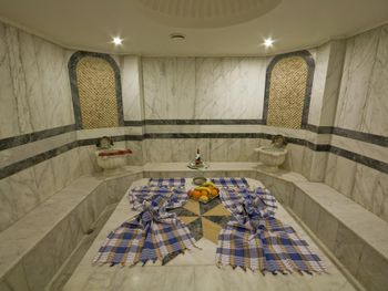 Гости могут заказать профессиональный массаж и понежиться в гидромассажной ванне на крыше, любуясь видом на Мраморное море. В числе прочих удобств — крытый бассейн, традиционный хаммам и расслабляющая сауна.