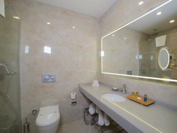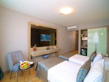 Нам дали 2 раза не ту комнату, которую мы бронировали и за что мы по факту платили. Думали, что мы не понимаем их язык и обсуждали нас. На ресепшене нас хотели обмануть в конвертации. Постель была грязная. Мы позвонили и попросили их заменить. Тот, который пришел заменять, позвонил другому и на турецком сказал: keske degistirseydin. Что означает: Эх, если бы ты поменял постель. То есть они даже не удосужились свежие простыни подготовить.
