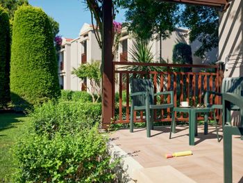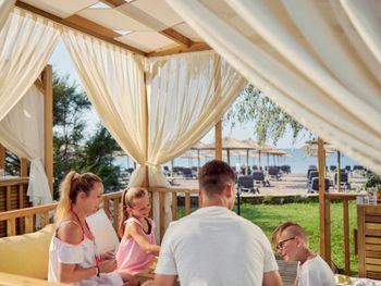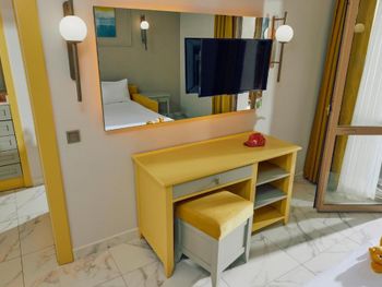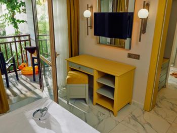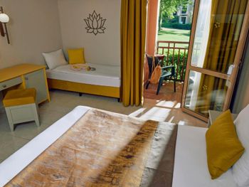 К сожалению вода в детском аквапарке была для нас слишком холодной, магазины в отеле очень дорогие, необосновано, а рядом с отелем нет ничего вокруг. До базара и города можно доехать на автобусе за 1 евро или на такси, 15 евро в одну сторону. Ехать минут 15. Хамам работал, но цены не дешёвые, самая дешёвая программа 85 евро, и потом после массажа обязательно говорят что везде проблемы, необходимо брать следующие посещения:) К сожалению и непонятно зачем бар на пляже платный, мы были с маленькими детьми и было неудобно ходить за напитками с пляжа. И на территории отеля нет холодильников с водой, нужно почти всегда за напитками подходить к барам и ждать в очереди чтоб попить, в жару очень неудобно. Пол в номере кафельный и всегда холодный, с детьми так же неудобно, но зато удобно делать уборку, которую делали всегда качественно и каждый день. Всё практически на немецком и основная группа людей немецкоговорящие и детская анимация тоже, не совсем удобно, кто не понимает. Нет общего стенда с программой, нужно скачать приложение и отслеживать там. Каждый день крутые мероприятия в Амфитеатре, с краю отеля, так как нигде нет информации об этом, узнали только через 3 дня случайно. Детские аттракционы дорогие, и странная система оплаты по картачкам, неудобно, остаются пункты которые выкидываешь.