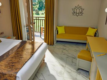 Номер у нас был обычный. Была двухъярусная детская кровать, дочке понравилась. Не было анимации для детей, для дочки 7 лет - мы ничего интересного не нашли. Но ей понравились водные горки.