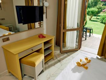 Это отель системы TUI, пакетный туризм. Приехали вечером вместе с автобусом туристов. Бедные две женщины в рецепции мужественно сражались с регистрацией и автобус быстро раскидали, так как там все приехали с ваучерами. Мы забронировали отель через booking и выяснилось, что из букинга они видят лишь фамилию и был ли платеж. То есть мне пришлось заполнять на каждую комнату отдельный лист, хотя в других отелях мне приносили такой лист на подпись. В общем женщины в рецепции молодцы.