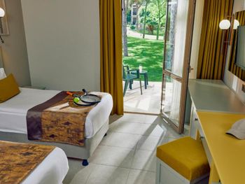 Нам не повезло с размещением, поселили у въезда, с видом на будку охраны. Запомнила все расписание приезда персонала, мусоровоза. доставки. Так что поспать с открытым балконом без кондиционера не удалось. Очень удивило полное игнорирование на просьбу переселить. У меня сложилось ощущение, что на ресепшене какой-либо вопрос может решить только один человек, Safak Akan. Очень приветлив , и старался помочь Coskun Zor, а так же доктор. Бармены все поменялись, и напитки стали не очень, кофе (капучино) могут налить без кофе. Хороший кофе можно получить только в кофе хаус. А платный Мохито принесли вообще безалкогольный. Мелочь, но осадок остался. У релакс пула очень шумно, с видом на бассейн заселили очень много семей с маленькими детьми, все время плач. В номерах отсутствовали туалетные принадлежности (шампунь, зуб щетка и т.п.).