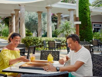 Идеальное расположение до моря и само море, песок немного местами смешан с камешками, так же во входе в воду, когда бьют волны мы немного царапались об камни, но не критично. Много разных бассейнов, на любой вкус. Развлечения от отеля бесплатные: катание на банане, катание на водных лыжах..) Каждый вечер детская дискотека а вечером прекрасная программа, с профессионалами, это те же аниматоры, что развлекают гостей днём. Молодцы ребята. Едой тоже были очень довольны, всегда всего хватало, повара старались делать разнообразные блюда, места так же всегда находили, ждать не приходилось. В общем, чувствовали себя супер комфортно и все потребности были удовлетворены! Мороженное лавка и кофе-хаус с шикарными десертами и вкусным кофе и какао!