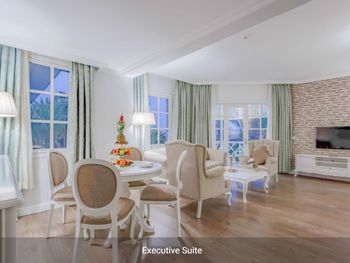 Номер: 44 кв.м, спальня и гостиная (двуспальная кровать или 2 односпальные), 2 балкона, 2 санузла, вид на сад/бассейн, макс.3 чел.