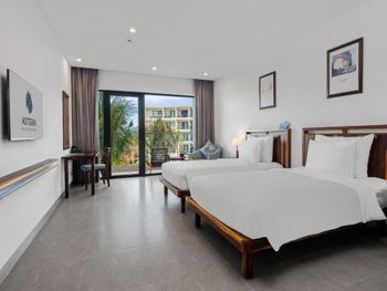Отдыхаем с 14 октября, отель новый с 2023г. и современный, большой номер, шикарный вид на море. Отель заполнен процентов на 30, поэтому очень комфортно. На ресепшене нам бесплатно улучшили номер, очень приятно, спасибо. Работает русскоговорящий менеджер, который решает все возникшие вопросы. И ребята аниматоры русскоязычные очень дружелюбные всегда все подскажут. Поэтому пребывание наше здесь очень комфортное. Кайфуем от пляжа, т.к. отель находится в отдалении, людей нет, прям как на Мальдивах) комфортные лежаки. Отель нам понравился, если еще приедем во Вьетнам, то обязательно остановимся в Астерии.