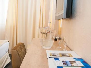 В номере был чайник. Его поставили на полку в шкафу.неудобное место- итак есть несколько полок. Зачем занимать удобную полку? Есть достаточно места на столе. 2 пакетика чая и2 кусочка сахара на пару. Запас пополняли с трудом. Странно для гостиницы такого уровня! Было холодно. В ванной есть запах сырости.. плохое освещение