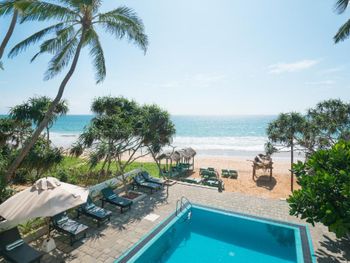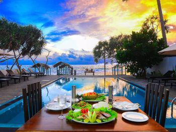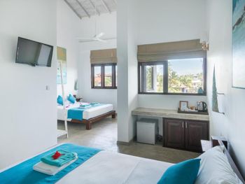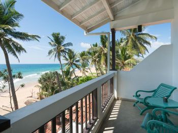 Отель на первой линии в 10 метрах от океана. Ванная со стеклом с видом на океан и шикарный балкон. Очень красивый и стильный дизайн в морских цветах. Есть горячая вода (нечастое явление в Хиккадуве). Доброжелательные администраторы и наличие небольшой парковки на территории, что удобно, если вы арендовали транспорт. Ужинали в ресторане отеля (за дополнительную плату), всё понравилось.