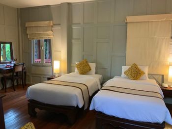 Мы жили в семейном номере - по сути два номера соединенные одной дверью. Оба номера были большими, хорошо продуманными и чистыми. Особенно понравился деревянный пол. Было очень чисто. Номера выглядели новыми. Ну пруд с кувшинками конечно красивый, но многолюдный. Территория для проживания находится отдельно - там очень тихо и спокойно. Рядом есть тайская ферма - очень интересно, советую для посещения. В целом хорошее место, чтобы остановится на один-два дня.