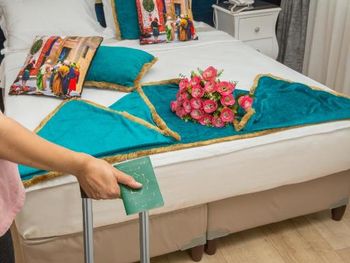 Комната была 6 квадратных метров. В номере была только одна кровать, больше ничего! Расстояние от кровати до стен по трем сторонам было не больше 50 см. Там не то чтобы вещи поставить было некуда, там пройти было не возможно! Там не было ничего! Ни стула, ни стола, ни табуретки, ни шкафа, ни полки, ни тумбы, то есть дословно одна кровать и всё! Вид с комнаты на один большой мусорник!!! Фото прилагаю! Плинтуса грязные и оборванные, розеток не было, стены заляпаны, постельного белья не было, лежало одно грязное покрывало без пододеяльника! После первого шока через несколько минут я поняла, что надо что то решать с этим вопросом! Что я осталась обманута и менеджер решил отомстить за то, что не согласилась доплачивать дополнительно деньги! Я поднялась на ресепшн и спросила что это значит, а в ответ услышала, что я их обижаю и как понимаю должна молча согласиться на то, что они мне дали! Пробовала решить вопрос с заменой, конечно во всем отказали! В конце концов решила, что надо уходить, так как унижение тоже имеет свои границы! Если ищите номер в Стамбуле и попадется вам этот отель, ещё и с привлекательной ценой, очень внимательно смотрите все фото! Так как из серии 17 фото, ваш номер может оказаться именно на последней фотографии! Хотя это типо номера одной ценовой категории!! И если не доплатите менеджеру, то унизят вас, обсмеют! И здесь либо вы унизитесь и будете жить в этом непонятно что, либо доплатите почти 50% и получите также не понятно что! Помните, что отель который сделал так с одними гостем, без проблем сможет повторить и с другим! Конечно я ушла из данного отеля потеряв полную стоимость. Но ни сколько не жалею! Не понимаю откуда такой высокий рейтинг этого отеля на букинге и кто ставит такие высокие оценки за данную категорию номера?! Или я попала на ужасных работников этого отеля или не понимаю в чем дело. Но будьте очень внимательны, так как таких отелей в Стамбуле полно!