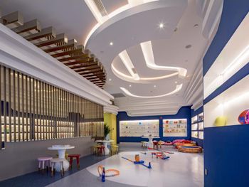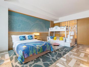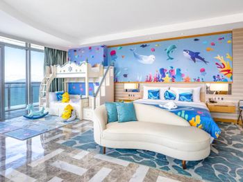 Прекрасный новый отель с хорошими вариантами жилья с детьми. Двухэтажные детские кровати большого размера. На первом этаже легко может спать взрослый. Рум сервис и европейская еда в номер выручали! Так же было включена прачка на 500 юаней.