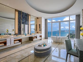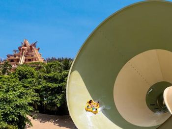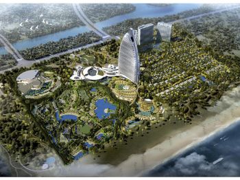 Отель Atlantis Sanya, оформленный по мотивам легенды об исчезнувшем острове-государстве Атлантида, представляет собой единый развлекательный и курортный комплекс с отелем, многочисленными ресторанами, магазинами и аквапарками. Отель расположен в северной части улицы Хайтан-роуд, всего в нескольких минутах езды от центра беспошлинной торговли Sanya International Duty Free City. Из окон открывается живописный вид на Южно-Китайское море.