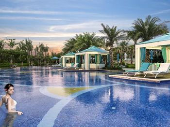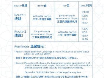 Поездка на автомобиле до железнодорожного вокзала Ялонг-Бэй занимает примерно 30 минут, а до международного аэропорта Санья Феникс — 50 минут.