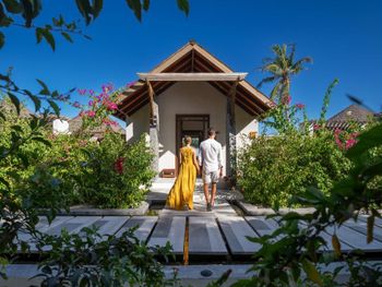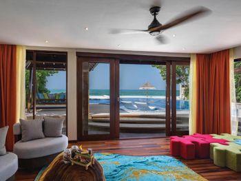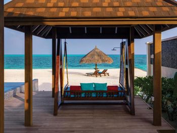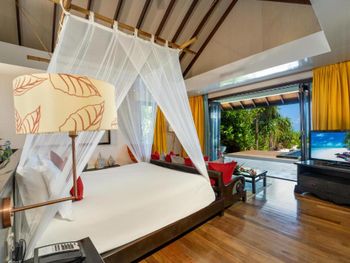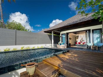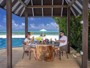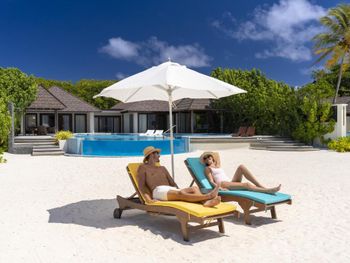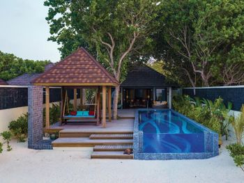 Просторные виллы с прямым выходом на пляж обставлены стильной мебелью. В распоряжении гостей ванная комната на открытом воздухе и собственный садовый участок с шезлонгами. Виллы оформлены в мальдивском стиле и оснащены док-станцией для iPod, электрическим чайником, кофемашиной и DVD-плеером. Также гостям предоставляются тапочки и набор для чистки зубов.