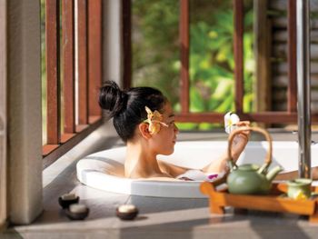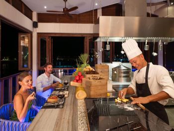 Жили на вилле с бассейном. Вилла хорошая и достаточно приватная, бассейн большой - можно поплавать. Косметика Elemis. Спа нормальный. Еда в ресторане морепродуктов очень достойная - есть и устрицы и лобстеры - все очень вкусно. Достойные коктейли везде.