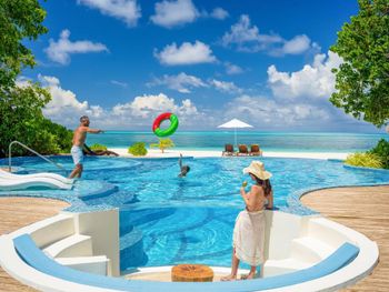 Очень уютный остров. Было мало народу, что создавало определенный комфорт. Персонал отзывчивый, вилла большая и приятная. Удобно что есть велосипеды для передвижения, потому что багги ждать довольно долго, а остров длинный. Еда разнообразная, много вегетарианских блюд, хороший алкоголь. Удобно что у всех гостей All inclusive, персоналу не приходится все время спрашивать об этом, как на других островах. Бесплатно дают маски и ласты для снорклинга. Очень хорошо организован трансфер на гидросамолете. Экскурсии очень дешевые, например поездка на снорклинг с акулами - всего $50 с человека, а на другом острове мы отдали $200.
