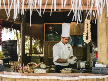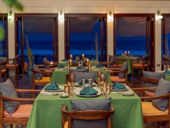 В курортном отеле работают 5 ресторанов и 2 бара у бассейна. В ресторане Spice подают оригинальные блюда интернациональной кухни в формате «шведского стола». Здесь оборудованы зоны для приготовления еды в присутствии гостей. Ресторан Just Veg является первым на Мальдивах исключительно вегетарианским рестораном. В ресторане Sunset готовят блюда по меню и гриль-блюда в стиле тэппанъяки. В ресторане Platinum Plus представлен прекрасный выбор вин премиум класса и других спиртных напитков.