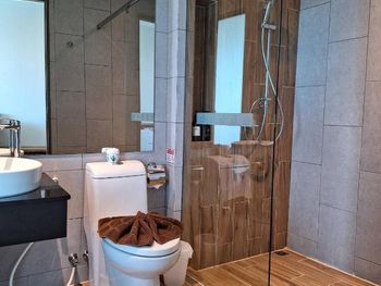 Перегородка в душе коротковата и из-за этого вода заливала часть санузла. Обещанного чайника так и не дали. Их слишком мало и не хватает на все номера. Наличие депозита в 500 бат. Большинство постояльцев останавливаются перед вылетом и лучше их потратить, чем замораживать до конца отдыха.