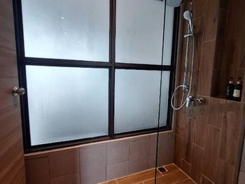 Забронировали 3х местный номер и были удивлены, что стенка в ванной комнате была полупрозрачная, и когда кто-то заходил в ванную комнату было видно ну и не удобно ночью или рано утром когда включали в ванной свет, он освещал всю комнату(