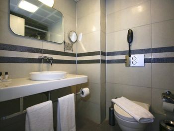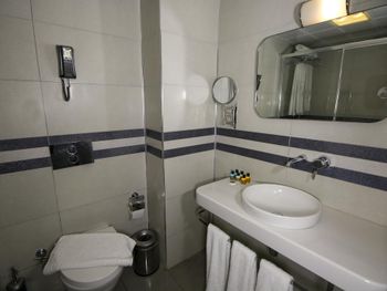 При приятном дизайне номера (проживали в номере 302) вызывает недоумение тот факт, что в санузле над унитазом висят телефонные провода, дополнительное увеличительное зеркало уже не первой молодости, с налетом ржавчины. Не хватало полочки над раковиной или хотя бы стакана для зубных щеток и мыльницы для мыла. Море чистое, но рядом находится пирс к которому пришвартованы катера, водные мотоциклы и т.д. Утром когда всю эту технику заправляют - пахнет совсем не морем.